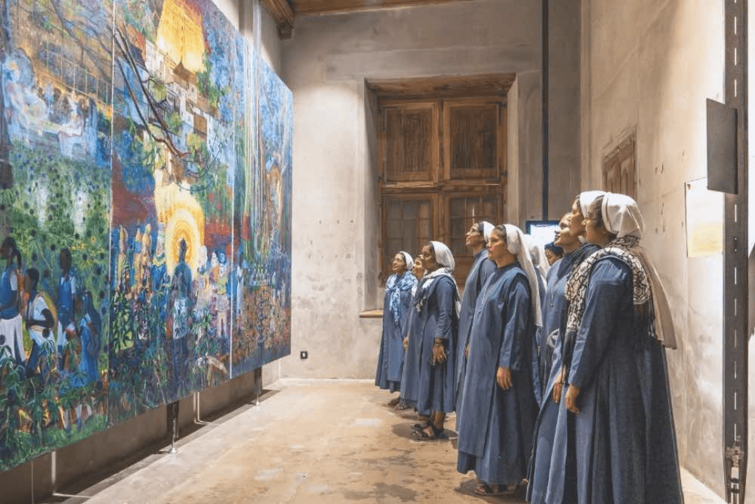 The first chapter of Sea a Boiling Vessel (2022-23) curated by Aazhi Archives at Kochi was an attempt to look at various the ebb and tide of oceanic movements, and of sea-borne terrestrial formations - social, political, cultural, artistic etc - through centuries of navigation, exploration, trade and colonialism. It featured different modes of interactions between land and sea: the various waves of colonial invasions, voluntary and forced migrations, trade and commerce, and spiritual journeys and shipwrecks. The show traced the marks and traces of the conflicts and confluences, conversations and conversions, rejections and adaptions that left their traces in various aspects of Malayalee life, polity and culture. For instance, the series of church murals in Kerala pose global art history in a different light, in terms of the transmigrations and adaptions of figures and symbols, as well as the aesthetic and material choices involved in it. The show explored the different ways in which the migration to the Middle East transformed not only Kerala’s economy and consumption patterns, but also its culture, architecture, cuisine and sartorial tastes. Not only men and women, ambitions and dreams, hopes and frustrations too crossed the seas and brought home different forms of ‘worldly’ imaginations. The poignant portraits of Chavittunatakam artistes standing in colourful attire in front of their dilapidated shacks, remind us not only about the current state of an ancient maritime art form, but also about the havoc that climate change and rising ocean levels have wreaked up on fragile life systems.