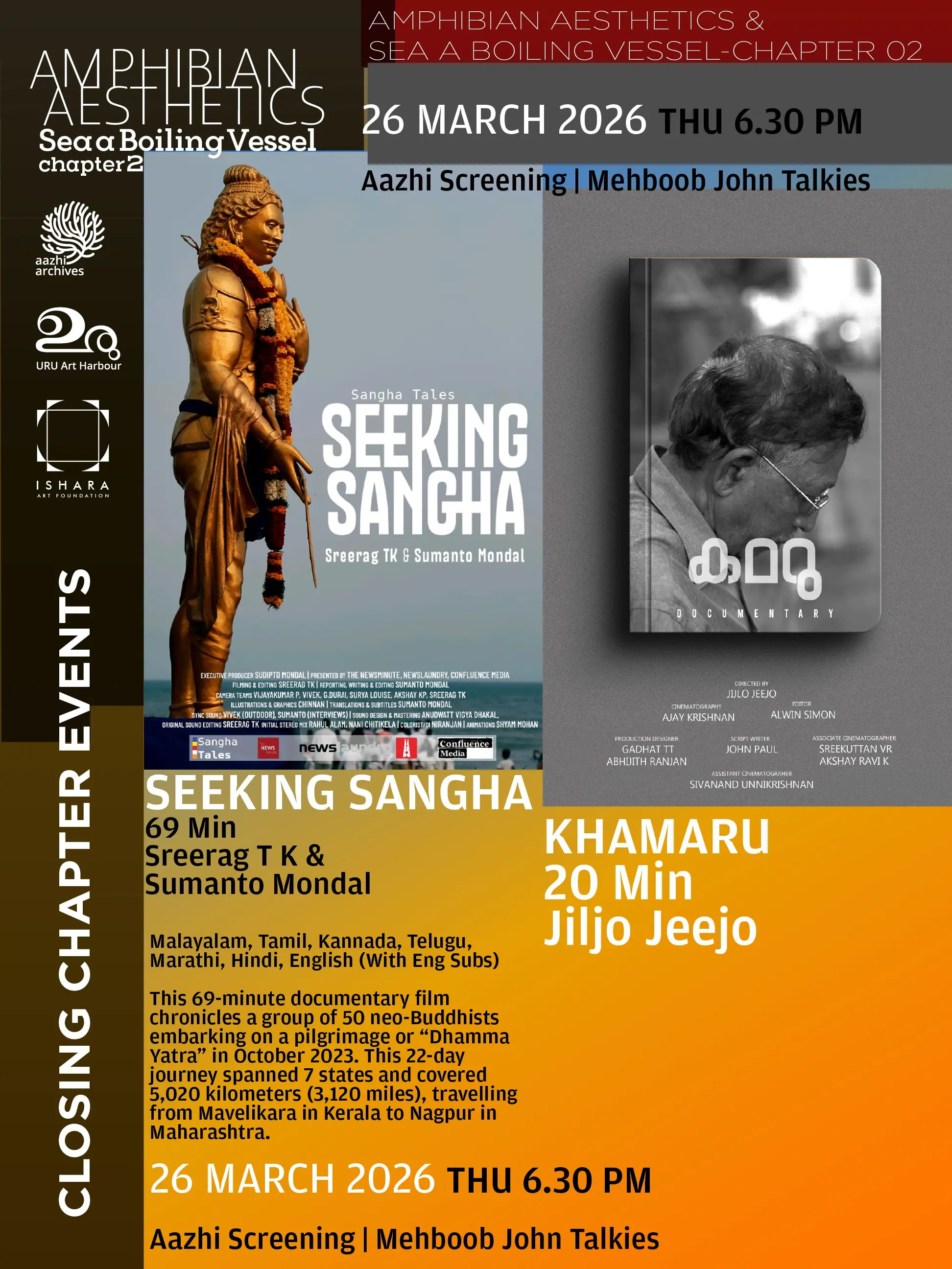 26 MARCH 2026, 6:30 PM | MEHBOOB JOHN TALKIES, URU ART HARBOUR, MATTANCHERRY