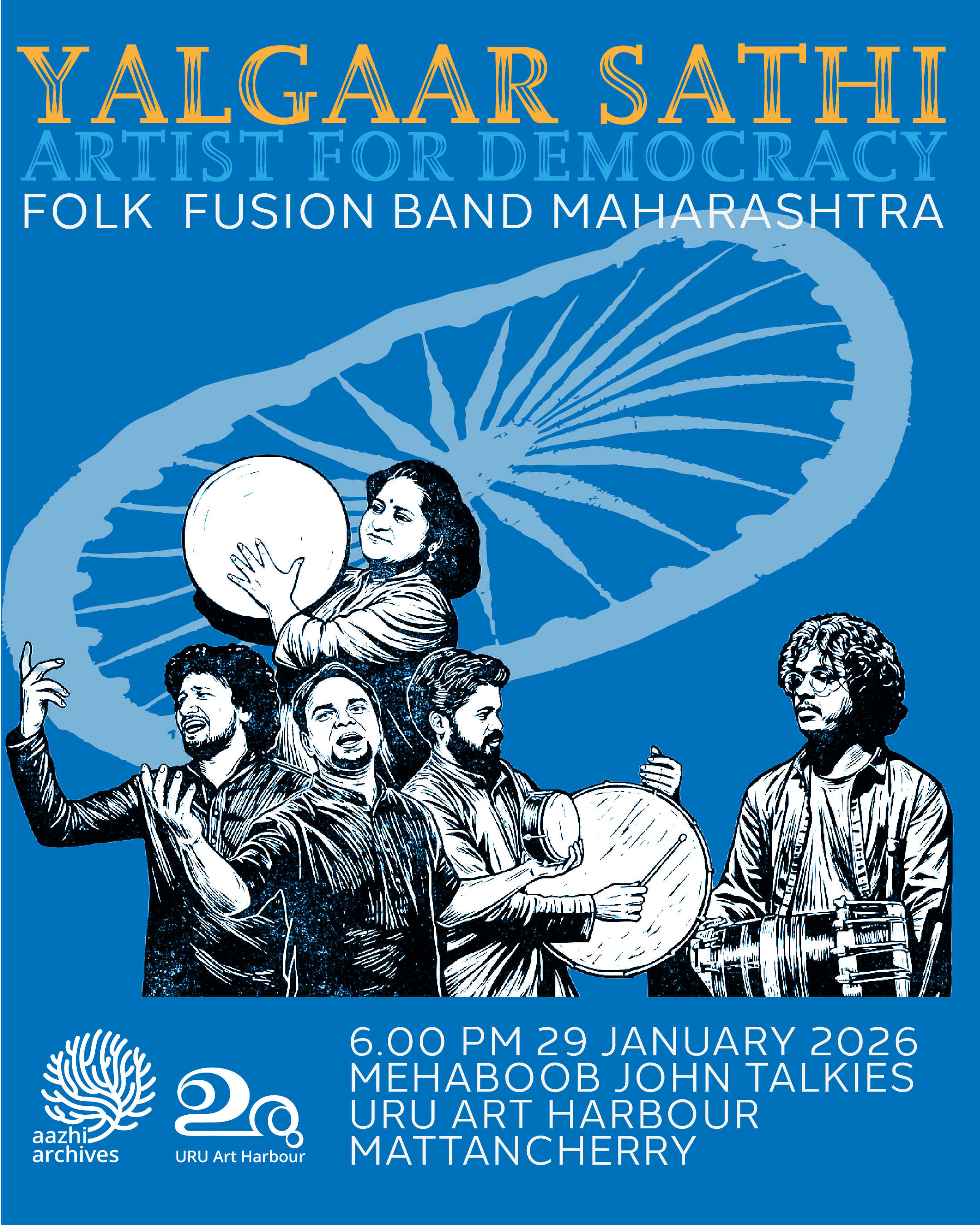 Yalgaar’s Sathi Band brings constitutional values to life through Rang Aman Ke—an interactive Ambedkarite Shahiri jalsa performance blending Bhakti, Sufi, folk music, and people’s theatre traditions. Sing along for justice, peace, love, and harmony.